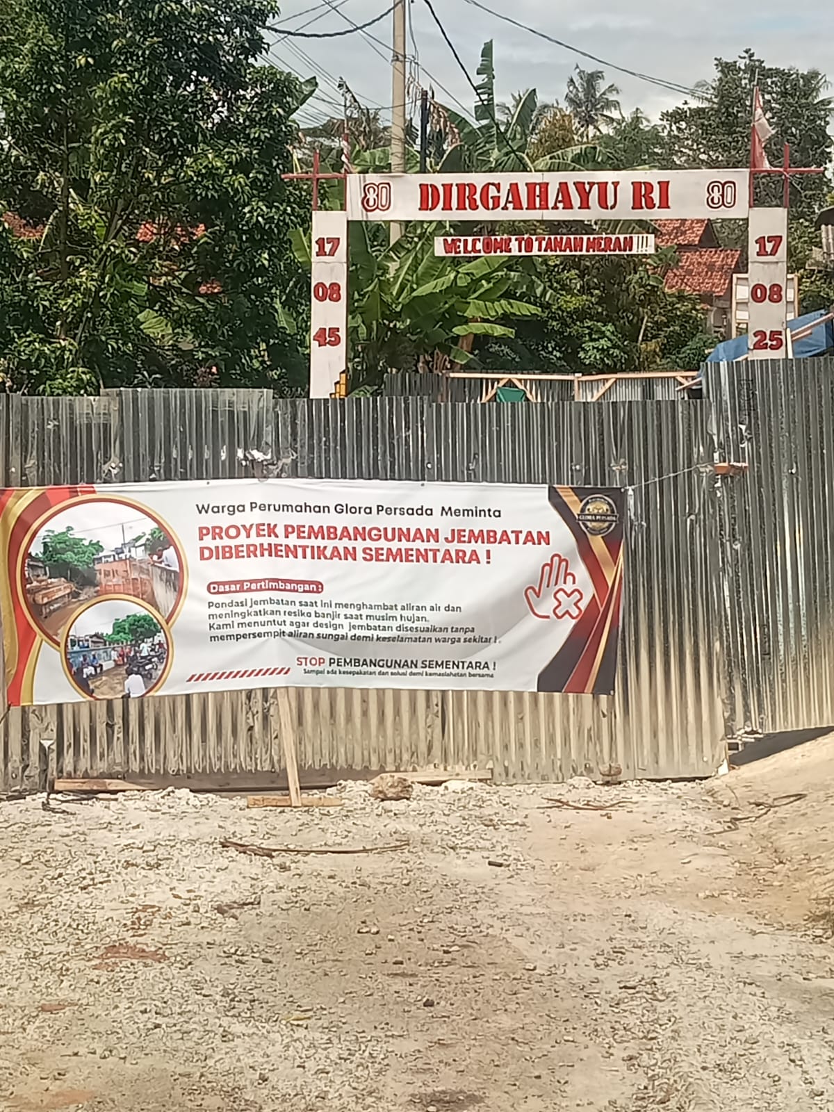 BALAM MediaJAYAPOST. com.-Proyek jembatan dinas PU kota Bandarlampung di hentikan sementara oleh warga, puluhan warga perumahan glora persada, kelurahan Rajabasa raya kecamatan Rajabasa kota Bandarlampung, melakukan protes terhadap proyek pembangunan jembatan yang di kerjakan oleh dinas pekerjaan umum (PU) kota Bandarlampung.